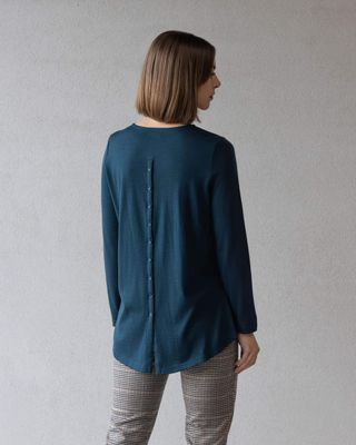 Relaxed oversized merino top. With its drop-shoulder silhouette and fluid shape, this style offers a comfortable, modern take on everyday merino dressing. • Made from soft 100% single jersey merino