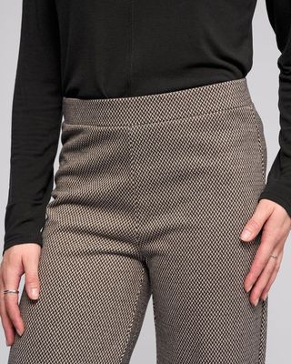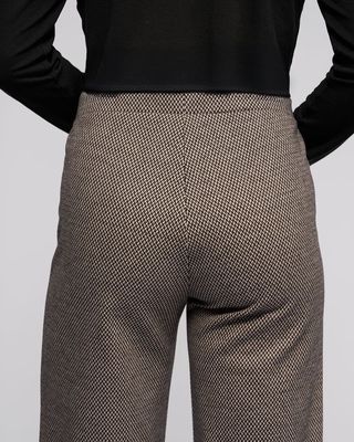 Full-length wide-leg pant in a soft stretch knit, designed in our Knox print - a black and oat check pattern. The easy pull-on style and elasticated waistband offer comfort and ease, while the drape of the knit fabric creates a smooth, elegant silhouette.